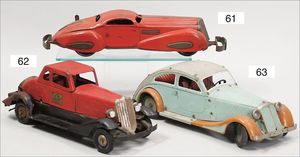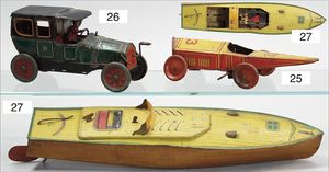 Rennwagen, Blech lithogr., Spiralfederwerk intakt, Vorkrieg, 21 cm, bespielt, altersbed. Lackfehler, ohne Fahrerfigur