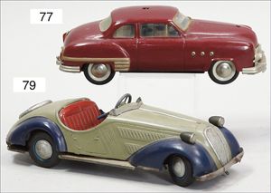 Limousine, 40er Jahre, wohl USA, 42 cm, Federwerk defekt, elektr. beleuchtete Frontscheinwerfer, Gummibereifung, aufwendig gearbeitet