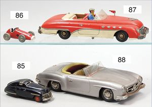 JNF Mercedes 190 SL, Blech, Batterieantrieb, mit Kabelsteuerung, bespielt, Frontscheibe gebrochen, im Orig.-Kart.