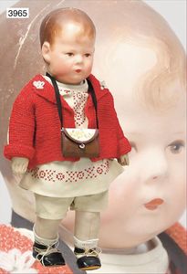 KÄTHE KRUSE kl. Du Mein, 34 cm, Stoffkopf, 3 Hinterkopfnähte, separat angenähter Daumen, breite Hüfte, Körper etwas verschmutzt, Nasenspitze sowie Farbe am Hinterkopf ein wenig berieben, sonst schöner Orig.-Zust.