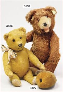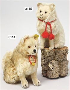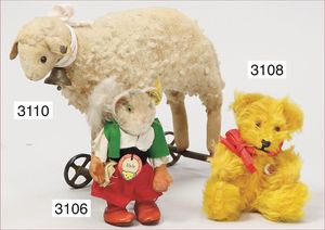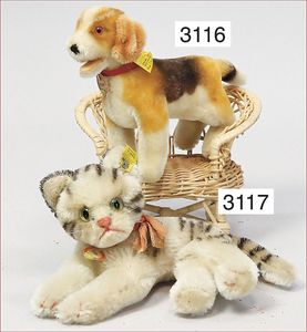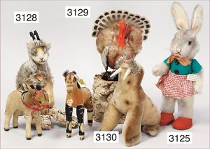 STEIFF Konv., 1 x Affe "Coco", mit Knopf, Schild u. Fahne, Nr. 1310,0, 9 cm hoch, 1 x Nagy, mit Knopf, Schild u. Fahne, Nr. 4310,00, 10 cm hoch, unbespielter Orig.-Zust., 1 x Mockie, Nashorn, 6 cm hoch, mit Knopf, Schild u. Fahne, Nr. 1310,00, unberührter Orig.-Zust., dazu 1 Affe Jocko, mit Knopf, Schild u. Fahne, Nr. 5315,03, 9,5 cm, schönes Konv.
