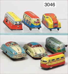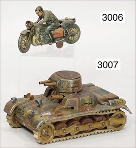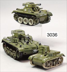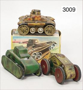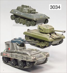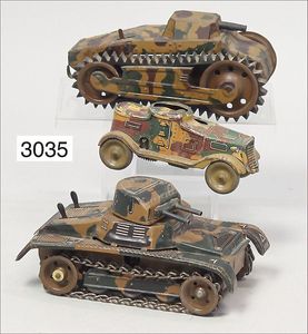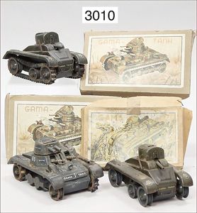 3 x Panzer, 1 x von Gama, Uhrwerk intakt, 1 x Made in France, von Joustra, Uhrwerk intakt, Funken sprühend, 1 x batteriebetrieben, Made in Japan