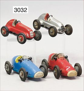 SCHUCO 4 Modell-Rennwagen, Blech, 2 x Racer 1070, 1 x Studio 1050, 1 x ungem., alles stärker bespielt, Uhrwerke intakt