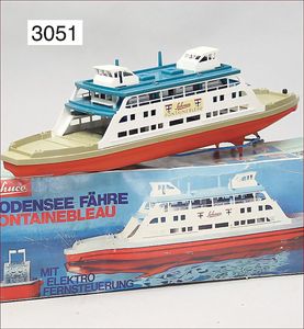 SCHUCO Bodenseefähre, Fontaineblau, mit Elektro-Fernsteuerung, auf Funktion nicht überprüft, im Orig.-Kart.