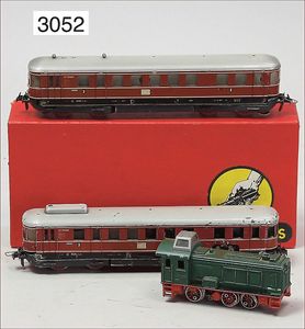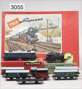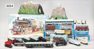 TRIX Express H0, Dampflok mit Schlepptender, Windblech etwas verformt, Nr. 20052, 1 x Lok ohne Tender, Nr. 20054, altersbed. Farbabplatzer, Spezialfahrregler, Nr. 20/45, Bundesbahn Packwagen u. Städtewagen, Orig.-verpackt