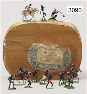 HEINRICHSEN Konv. flache Zinnfiguren, 3 cm, kleine Spanschachtel mit 20 Teilen, Ägyptische Armee, sowie 28 Teile Schäfer mit Vieh