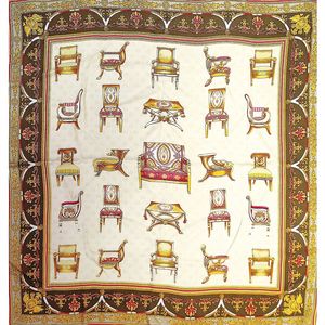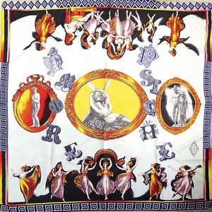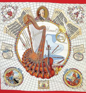 HERMES Seidenhalstuch, Design Amadeus Mozart, 85 cm x 85 cm, mit Musikinstrumenten, schöne kräftige Farben, unbenutzt