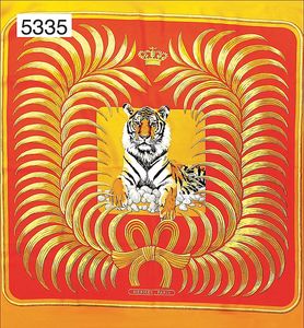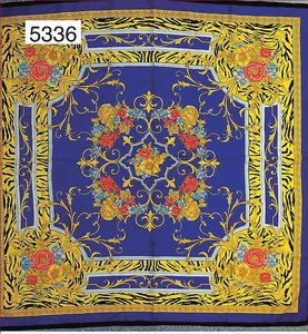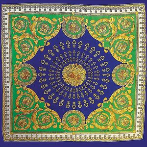 VERSACE Atelier-Seidenhalstuch, 90 x 90 cm, herrschaftl. florales Muster, Gold-Ornamente, mit Tigermuster, schöne kräftige Farben, royalblau/gelb, unberührter Zust.