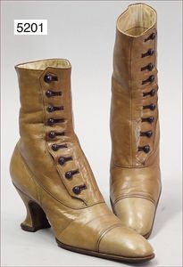 Damen-Lederstiefel, um 1900, cognacfarben, linksbündig Knopfreihe, 6 cm Absatz, weiches Kalbsleder, 24 cm lang, schöner Orig.-Zust., knöchelhoch