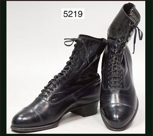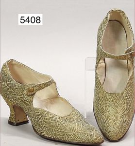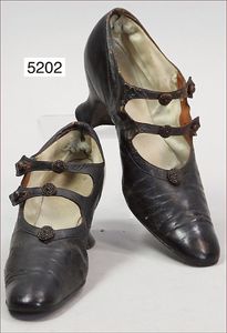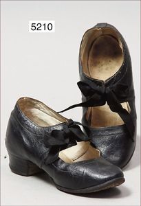 Damenschuhe, mit Absatz, ca. 1910, schwarzes weiches Leder, innen mit Seideneinsatz, an der Ferse etwas verschlissen, Absatz 5,5 cm, Länge 24 cm, altersbed. Abnutzungsspuren, sonst schöner Orig.-Zust.