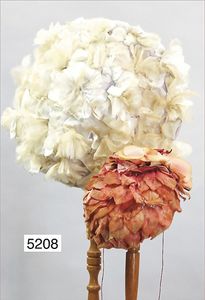 Konv. 2 Damenhüte, 1 x Damenhut ca. 1920, Paris, Lazarus, Cincinnati, Made in USA, zartrosa mit Stoffblumenbesatz, 20 cm Durchm., 1 gr. Damenhut aus floralen Stoffblumen, eierschalenfarben/weiß, 17 cm Durchm.