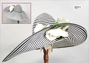 prachtvoller Damenhut, Kopfdurchm. 17 cm, 60 cm Durchm. des Hutes, reichhaltiger weißer Stoffblumenschmuck (Rosen), dunkelblau/weiß