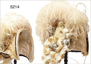 herrschaftl. Damenhaube, cremefarben, reichhaltiger Straußenfederschmuck, Seide und Spitze, Seide verschlissen, 17 cm Durchm., vor 1900