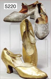 Konv. 2 Damen-Abendschuhe, 1 x goldene Schuhe, Hersteller Otto Lanauer, München, gestempelt 115540, dazu 1 Paar Damen-Schuhe, amerikanisch, Hersteller Clarks Wessex Street Summer Set