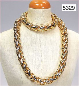 CHRISTIAN DIOR Modeschmuck, 1 x Armband, vergoldet, Länge 21 cm, Klickverschluss, massiv, 1 cm dick, dazu passende Halskette, 44 cm lang, im Orig.-Kart., ungebraucht