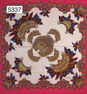 ESCADA Seiden-Halstuch, 85 x 90 cm, königliches Federdekor, mit Kronen und Federn, schöne kräftige Farben, pink/royalblau/gelb, guter Zust.