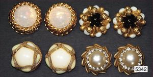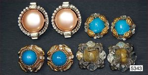 Konv. 4 Paar Ohrclipse, Modeschmuck, 2 x mit mittigen blauen Steinen, Strasssteinarbeit, ausgefallen