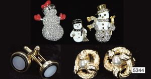 gem. Christian Dior, mittig graue Perle, goldfarben, Strasssteinbesatz, dazu 1 Paar Manschettenknöpfe
