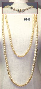 EMANUEL NAGRO Paris, ausgef. Damen-Perlenkette, 2-fach Verschluss, vergoldet, mit herzförmigen Strasssteinen, bestickt, 89 cm, schöner Orig.-Zust.