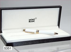 MONT BLANC Kugelschreiber, Meisterstück, weiß, 10,5 cm, Spitze etwas angelaufen, im Orig.-Kart.