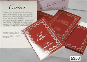CARTIER Louis Cartier, SÉRIE LIMITÉE, Kugelschreiber, ebonite Nr. C0417, im Orig.-Kart., mit Zertifikat, orig. Patronen, Holzoptik, 14 cm, ungebraucht
