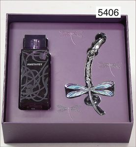 LALIQUE FRANCE Amethyst, neuwertiges Parfum, im Orig.-Kart., lila, Au de Pafum, 100 ml, Glasflacon, mit Schlüsselanhänger, Libellenform, silber, ungebraucht, im Orig.-Kart.