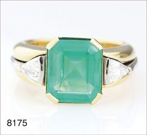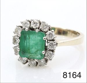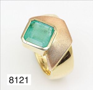 Smaragdring, GG/RG 750/000 (Goldschmiedearbeit), Smaragdachteck ca. 2,5ct , (intensive Farbe), RW ca. 54, (Neupreis ca. € 4600,-)