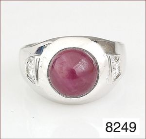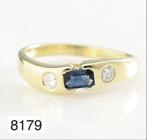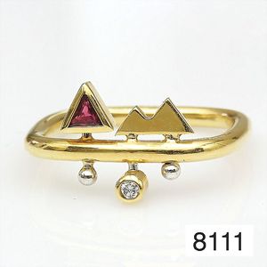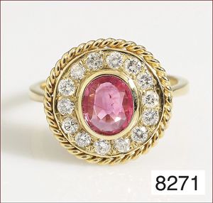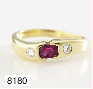Ring, GG 750/00, Brillant 0,015 ct tw-vsi, Rubin-Dreieck, ca. RW 52, Ringschiene U-förmig !!