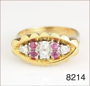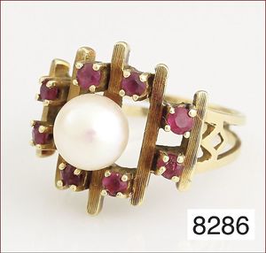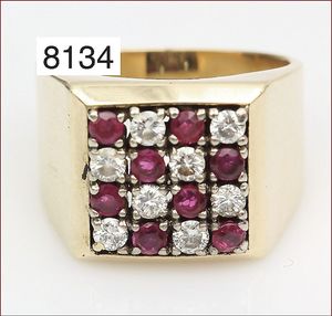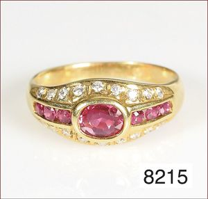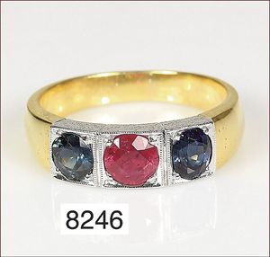 Ring, GG 585/000, Rubin & Smaragd facettiert, RW 53