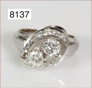 Ring, GG/WG 750/00, Diamant-Navette, 0,07 ct tw-vsi, ca. RW 56, total ca. 10,6 g (Neupreis € 795)
