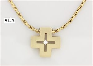 Anhänger, FORRER & JACOT (Schweiz), GG 750/000, Brillant ca. 0,10 ct w-si, Hintergrund schwarz veredeltes Gold (750,-)