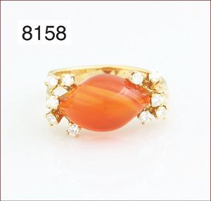 Brosche, Metall vergoldet, 54 mm, orange farbener Stein