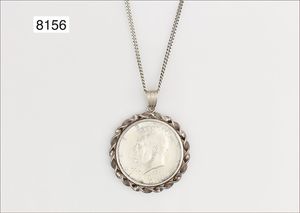 Collier, im JUGENDSTIL, Silber 925/000, 2 kleine Opale und ein Perl-Tropfen als Abschluss, L. 44,5 cm