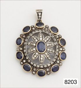 Ausgefallenes als Anhänger umgearbeitetes Schmuckstück, GG 750/000, mit 5 Diamantrosen ca. 1,3 ct, florales Blütendekor und Emailleeinlage, Spanien um 1840-1850