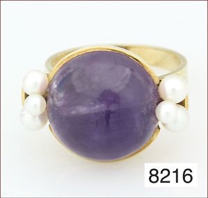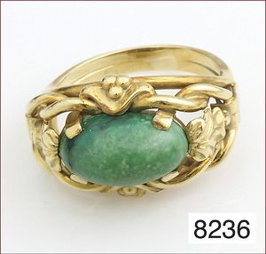 Ring, 333/000, 2 St. ½ Perlen, Türkiscabochons(1 Stein fehlt), RW ca. 50