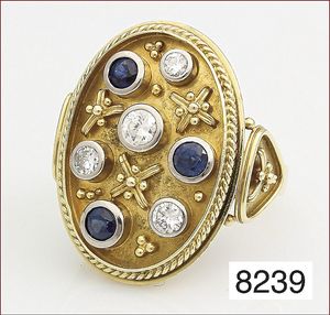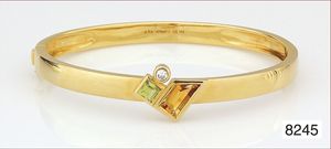 Armreif, Metall vergoldet, Saphire, 1 grüner Stein ?, 1 Stein fehlt einer ausgebrochen