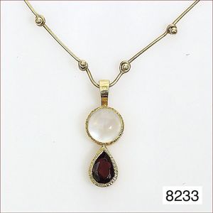 Collier, GG 333/000 Kette, doubliertes Mittelteil mit Granaten, 40,0 cm
