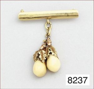 Elternteil mit zwei Jungvögel, Metall vergoldet, jeweils mit Broschierung zum Anstecken