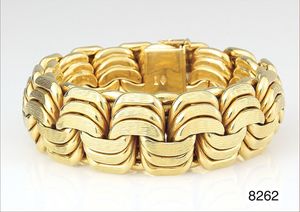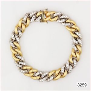 Herren-Armband (Phantasie), PD 950/000, GG 750/000, mit ausgefallenem Schmuckkarabiner, Fa. Meyer, total 15,4 g, 22,0 cm