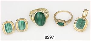Lot: 70er Jahre Armreif Silber 835/000, Halsreif mit Anhänger, Silber 835/000, Malachit