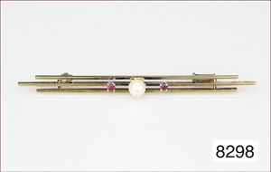 Nadel, ENGLAND, viktorianisch um1880, nachpunziert mit 800/000 Silber ! (Stadtwappen überschlagen!), schwere Ausführung, 3 facettierte Granate, (Broschierungsstift muss neu verstiftet werden), B. 60,8