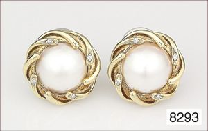 Ohrhänger, HISTORISMUS, 1860/70, deutsch/französisch ?, GG ca. 500/000, kleine ½ Perlen, Hänger wohl später, mit weißem Stein