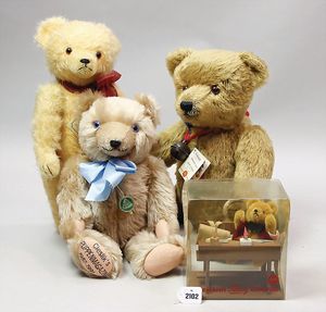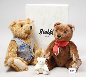 STEIFF Exclusively for teddybear of Witney, Teddybär, Baby Alfonso, mit Kosacken-Outfit, limitierte Auflage von 5000 Stück, 1995, dazu 1 Rotbär, Replika