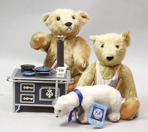 STEIFF 2 Teile, Tessie, komplett, Nr. 1322,05, dazu 1 Molly, ohne Knopf u. Schild, 16 cm