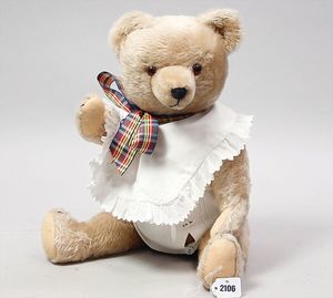 STEIFF Replika, Baby-Bär, 1946, blond 36, im Orig.-Kart., dazu Porzellan-Plakette, mit Zertifikat, 30 cm