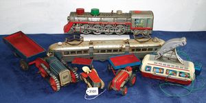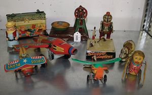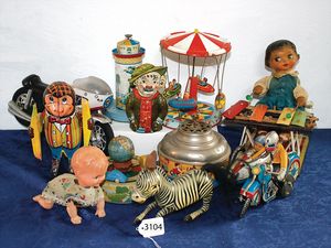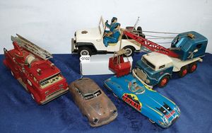 Konv. Blech-Spielzeug, meist Made in Japan, stark bespielt, Kleinteile fehlen, auf Funktion nicht überprüft