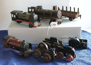 Spur 0, Märklin-Lokomotiven, Ersatzteilspender, Uhrwerkantriebe, teilw. etwas verformt, Kleinteile fehlen