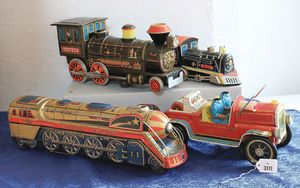 Konv. Blech-Spielzeug, Eisenbahnen, 1 x gemarkt TM Trade Mark, u. anderes, Kleinteile fehlen, stark bespielt