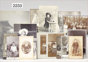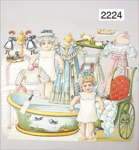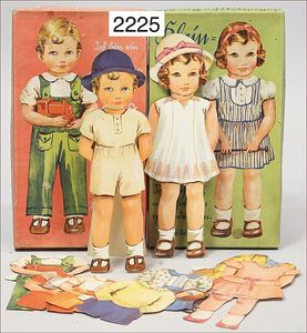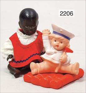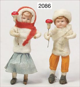 Christbaumschmuck, Watte, Kinder mit Kreppkleidung und Celluloidgesichtern, 10 cm
