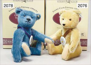 STEIFF Club Edition, Replika, original, Teddybär, 1908, blau 35, im Orig.-Kart., mit Porzellan-Plakette und Zertifikat, 33 cm, unberührt
